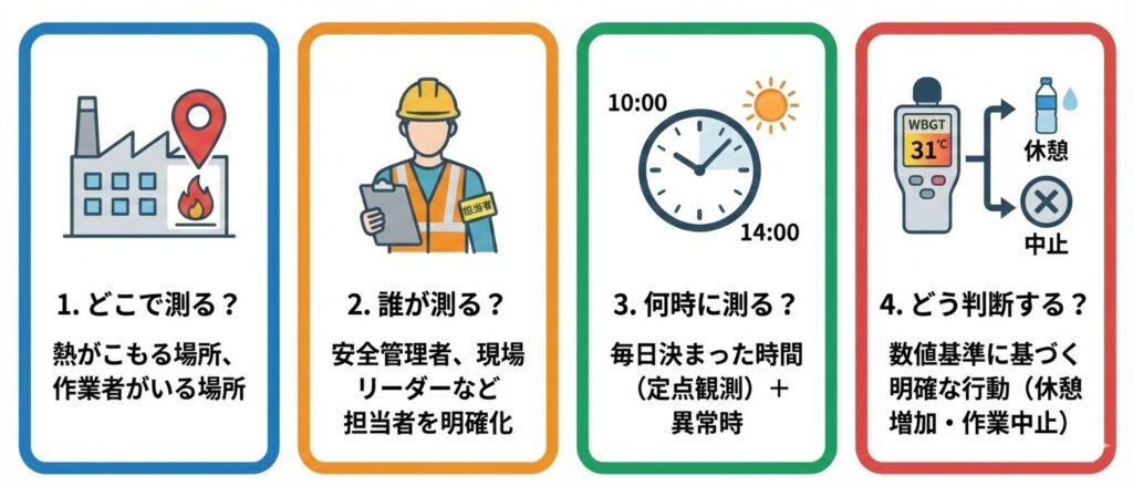 - データで管理: WBGT値という共通言語で、管理者が迷わない判断基準を作る。